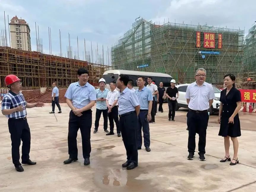 在項目部負責人及相關管理人員的陪同下,胡劍飛走進工地現(xiàn)場,深入了解贛州經開區(qū)文化藝術中心(A、C地塊)項目規(guī)劃設計、建設理念、工程進度等情況,就相關問題展開現(xiàn)場辦公,并對當前狀態(tài)表示滿意。