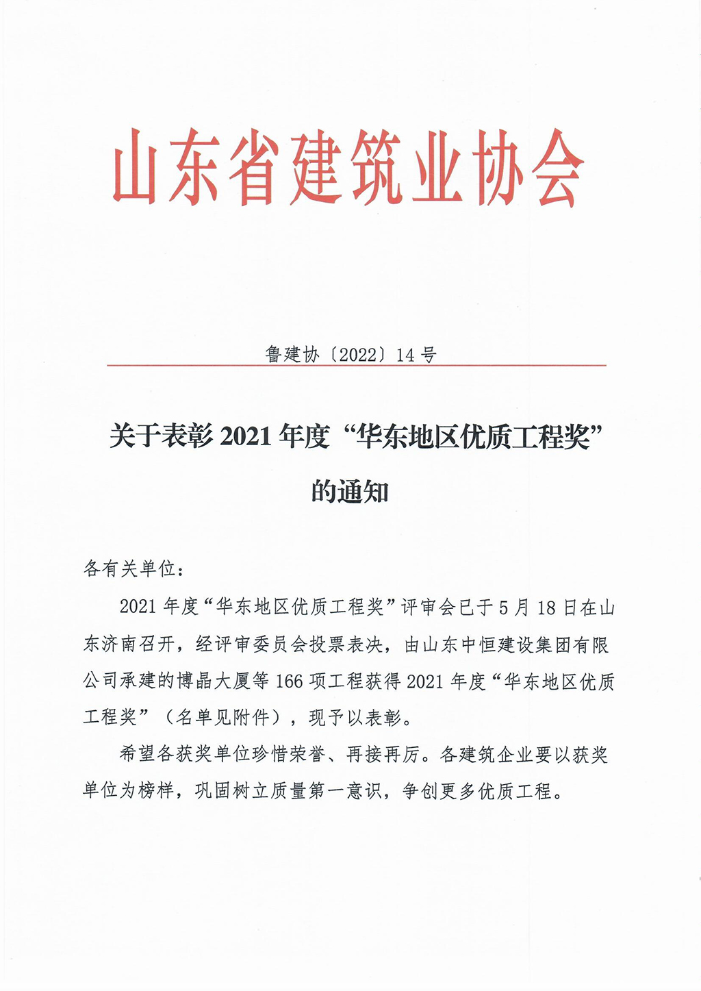 喜訊|宏盛建業(yè)這項(xiàng)工程再獲2021年度華東地區(qū)優(yōu)質(zhì)工程獎(jiǎng)