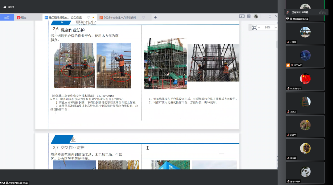 導(dǎo)讀:今年6月是全國第21個“安全生產(chǎn)月”,為深入學(xué)習(xí)貫徹習(xí)近平總書記關(guān)于安全生產(chǎn)重要論述,貫徹落實(shí)安全生產(chǎn)法、安全生產(chǎn)十五條措施。6月28日下午,宏盛建業(yè)項(xiàng)目管理中心工程技術(shù)部負(fù)責(zé)人韓西騰組織召開安全教育培訓(xùn)會。本次培訓(xùn)主題為:新安全生產(chǎn)法對安全生產(chǎn)管理的重點(diǎn)要求以及企業(yè)安全管理相關(guān)制度。集團(tuán)各地項(xiàng)目管理人員通過遠(yuǎn)程連線的形式進(jìn)行。