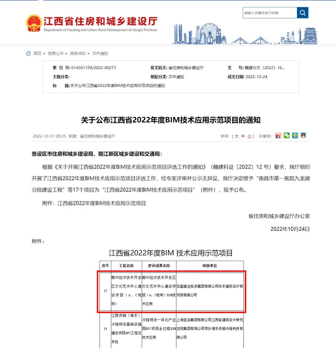 喜訊|宏盛建業(yè)贛州經(jīng)開(kāi)區(qū)文化藝術(shù)中心建設(shè)項(xiàng)目榮獲江西省2022年度BIM技術(shù)應(yīng)用示范項(xiàng)目