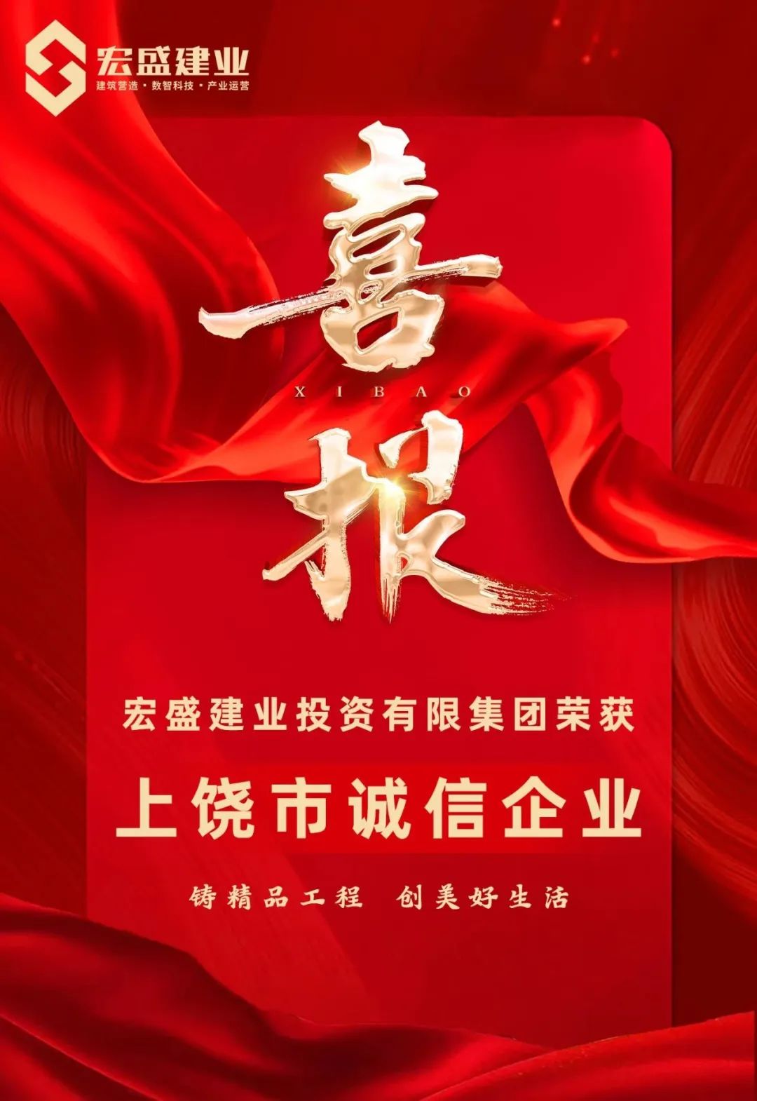 喜訊|宏盛建業(yè)投資集團(tuán)榮獲“上饒市誠(chéng)信企業(yè)”稱號(hào)