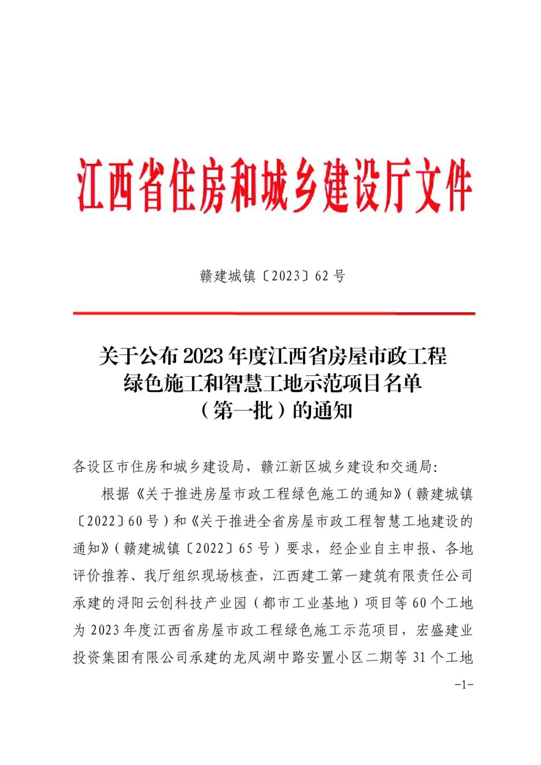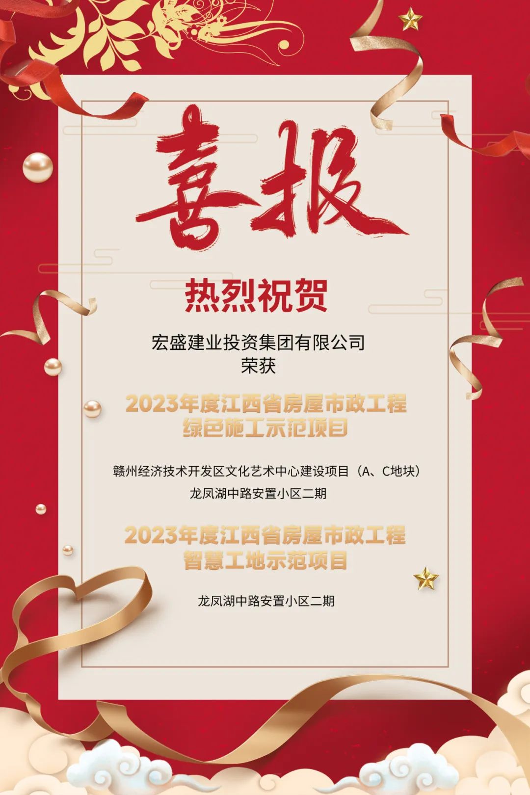 喜訊丨宏盛建業(yè)多項工程被評為“2023年度江西省房屋市政工程綠色施工和智慧工地示范項目”