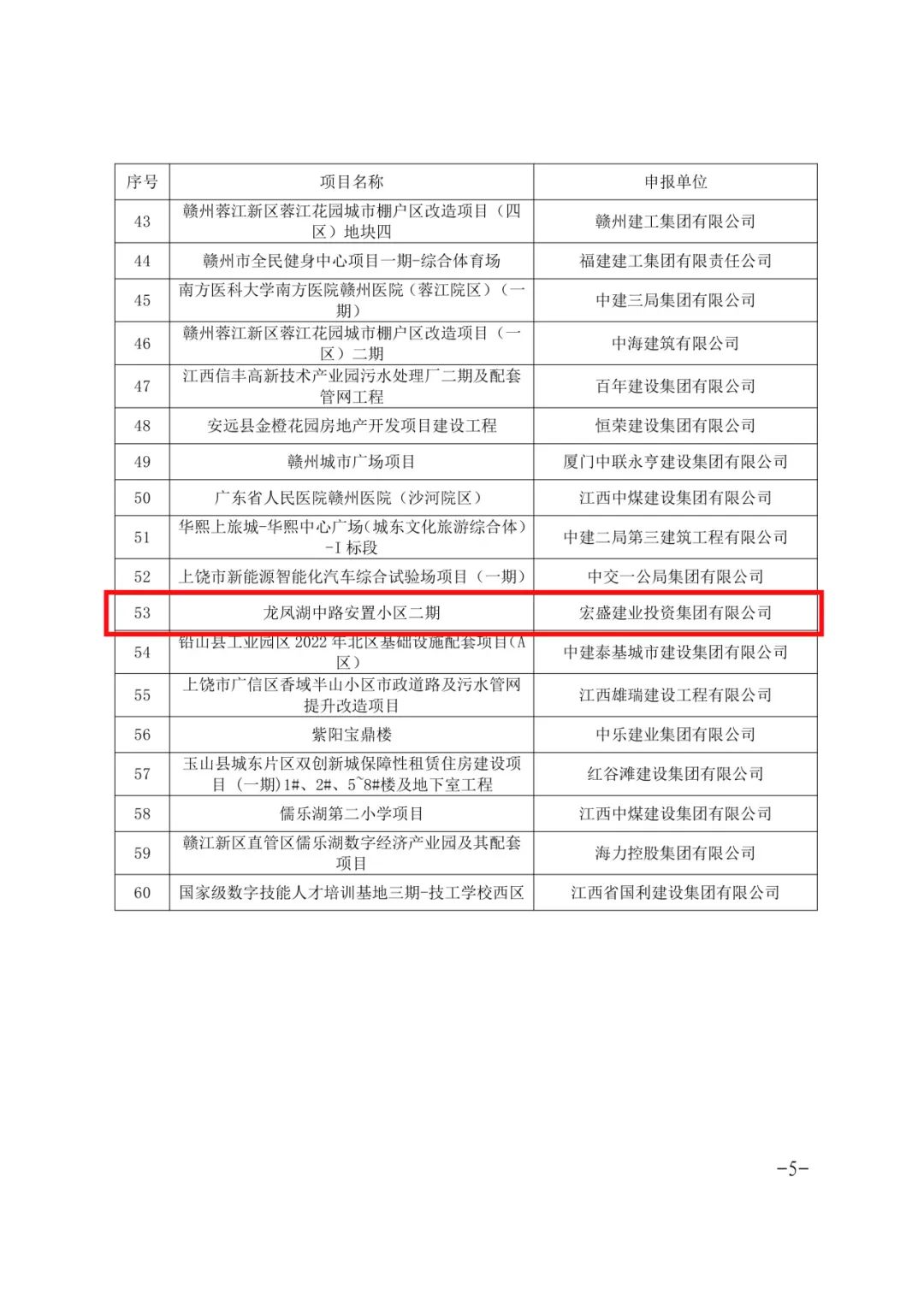 導(dǎo)讀:近日,江西省住房和城鄉(xiāng)建設(shè)廳文件贛建城鎮(zhèn) [2023]62號文件發(fā)布了2023年度江西省房屋市政工程綠色施工和智慧工地示范項目名單。由我司宏盛建業(yè)投資集團(tuán)承建的“龍鳳湖中路安置小區(qū)二期”被評為“2023年度江西省房屋市政工程綠色施工示范項目”、“2023年度江西省房屋市政工程智慧工地示范項目”。“贛州經(jīng)濟(jì)技術(shù)開發(fā)區(qū)文化藝術(shù)中心建設(shè)項目(A、C)地塊”被評為“2023年度江西省房屋市政工程綠色施工示范項目”。