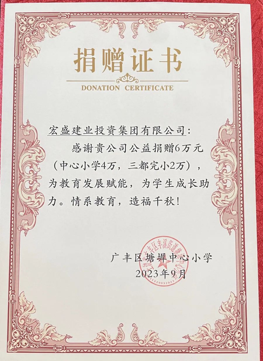 這一年,集團(tuán)再次向家鄉(xiāng)中心小學(xué)和三都完小捐款60000元,從2002年改制以來,堅(jiān)持飲水思源,知恩圖報(bào),積極參與社會公益事業(yè),始終情系家鄉(xiāng)教育,多年來,通過改善學(xué)校硬件設(shè)施、設(shè)立教育獎學(xué)金、出資捐建學(xué)校圖書館等。