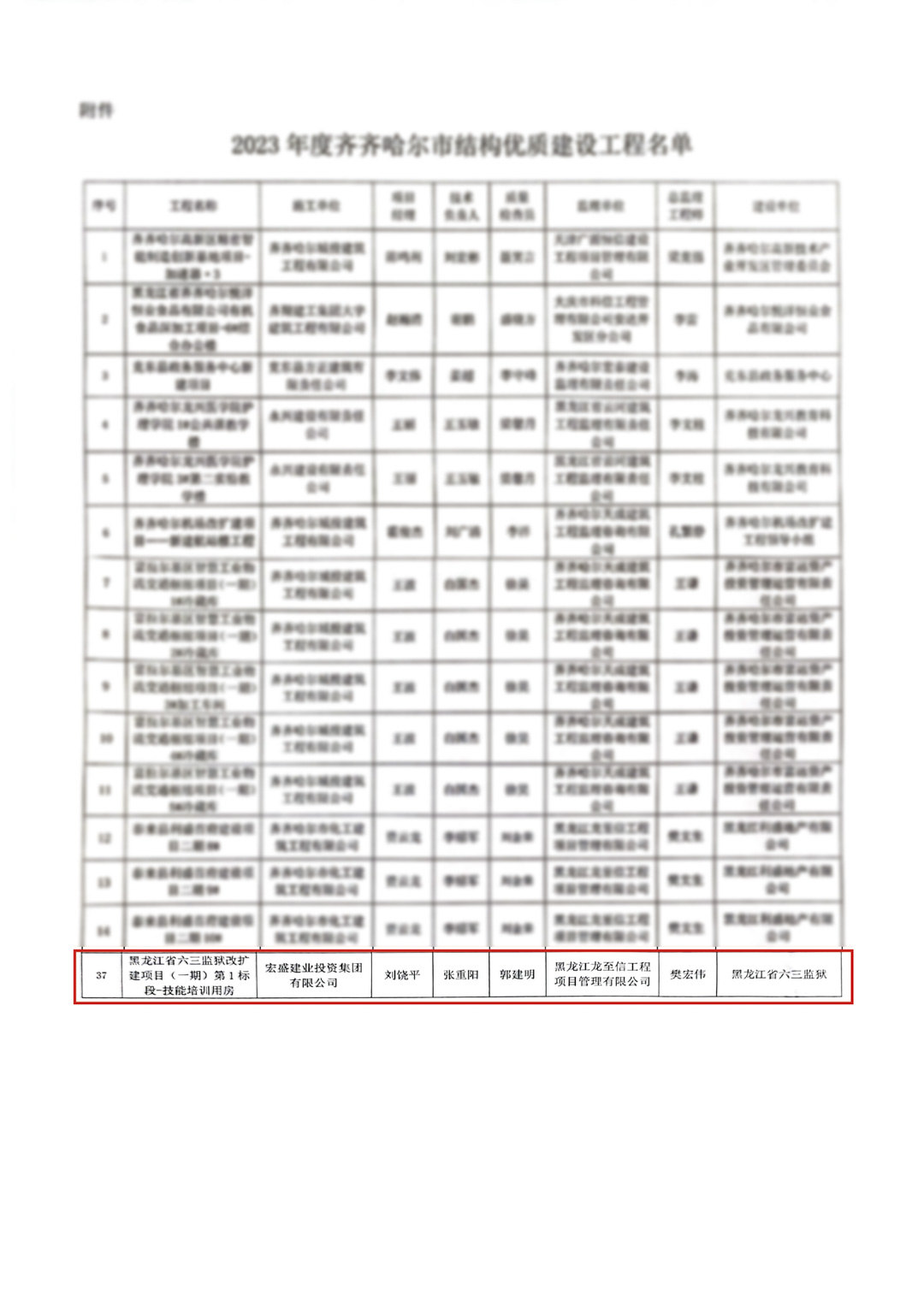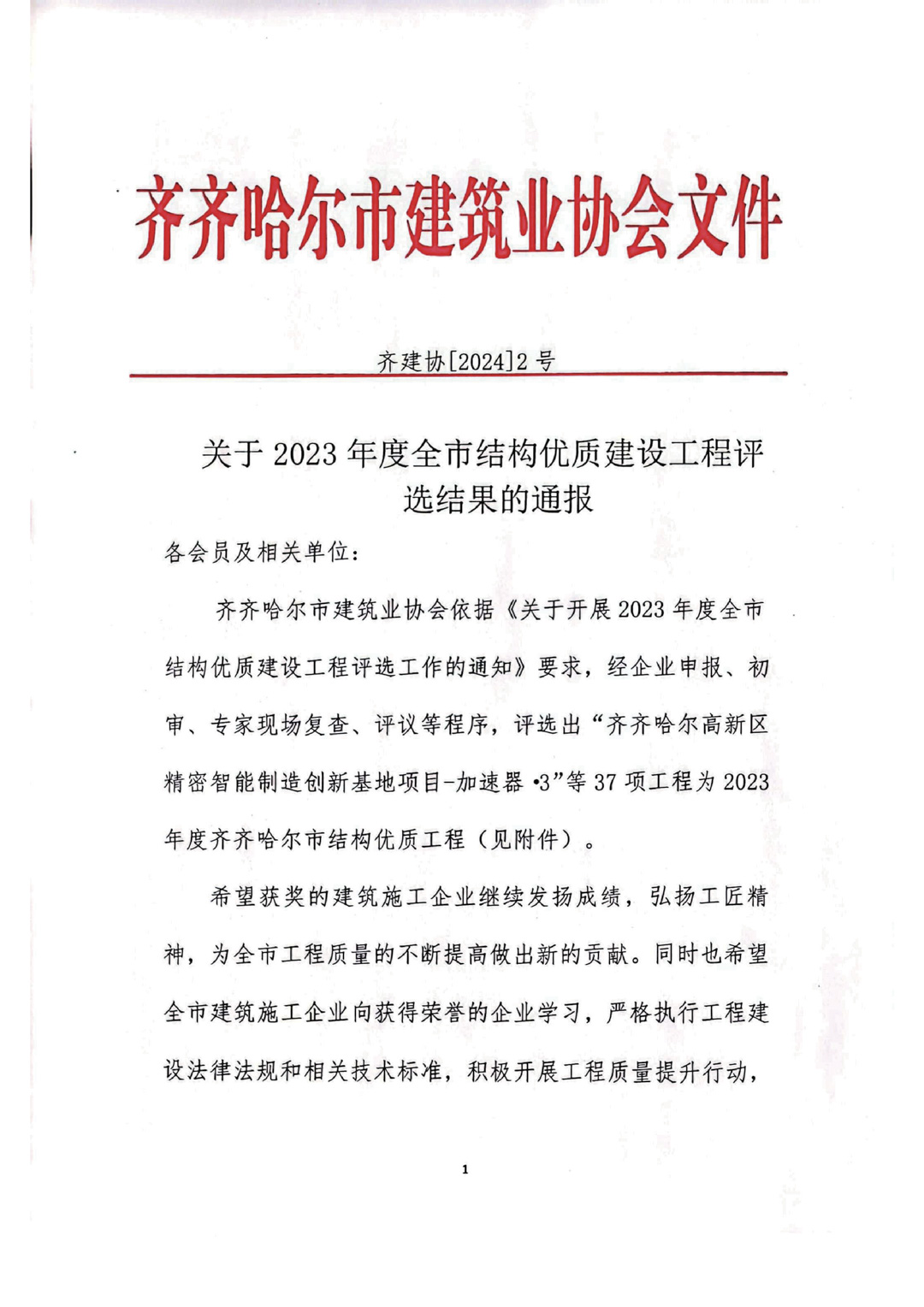 2023年度齊齊哈爾市結構優(yōu)質建設工程