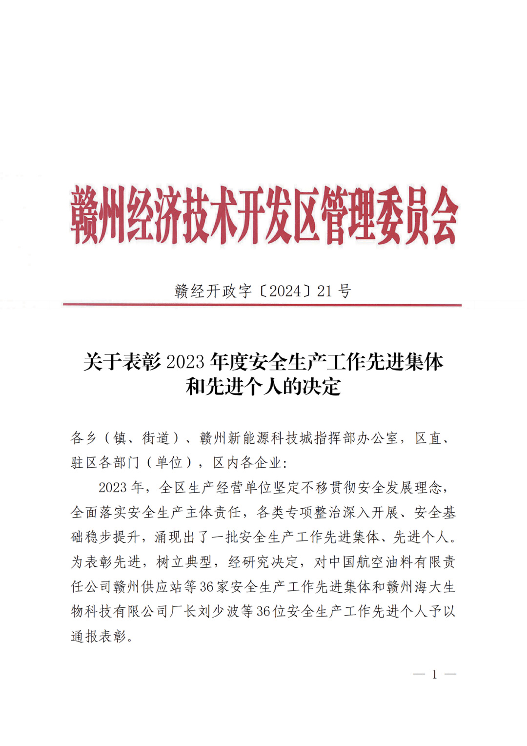 被贛州經(jīng)濟技術開發(fā)區(qū)管理委員會評為