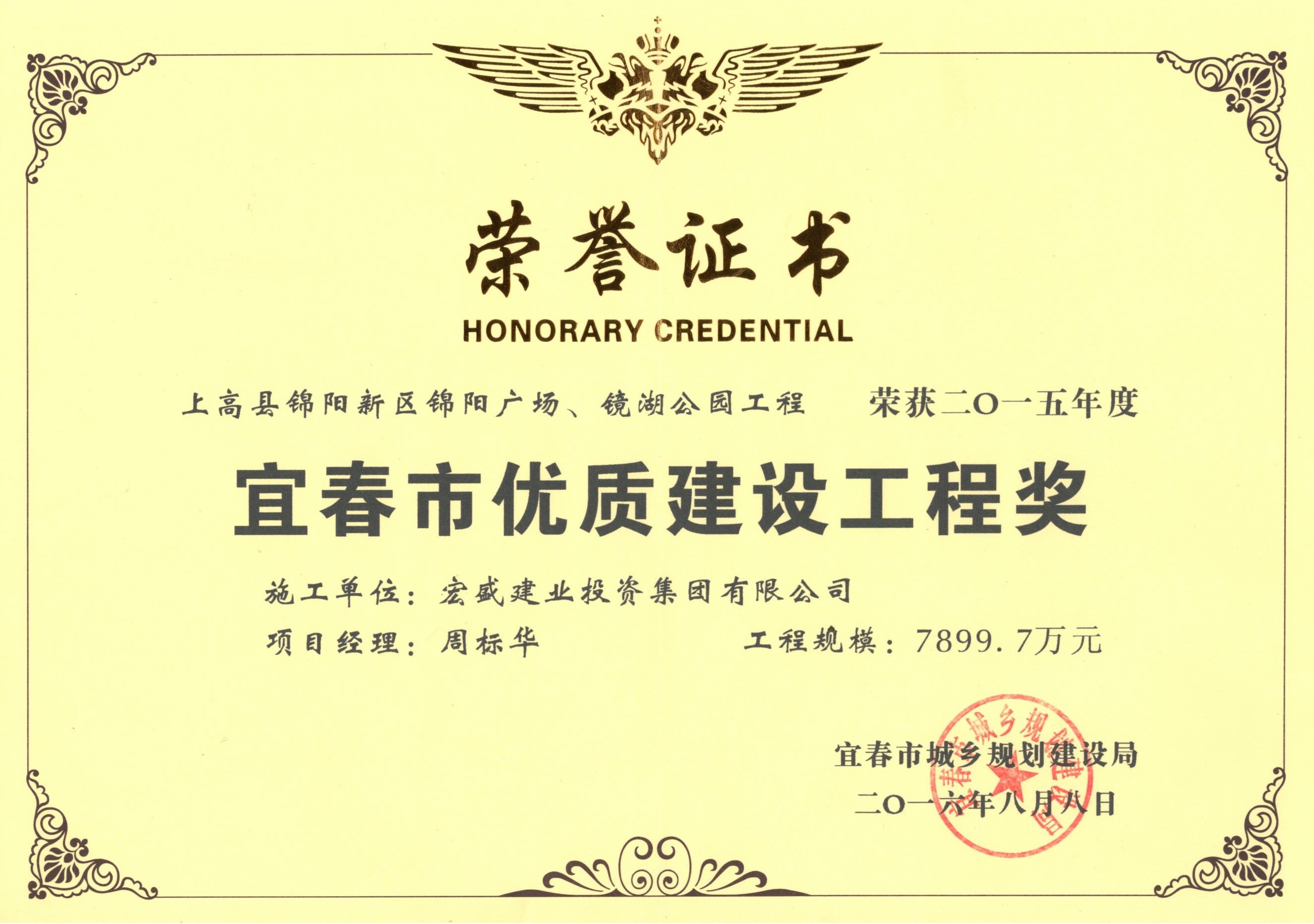 2015年度宜春市優(yōu)質(zhì)建設(shè)工程獎(jiǎng)