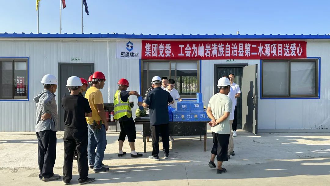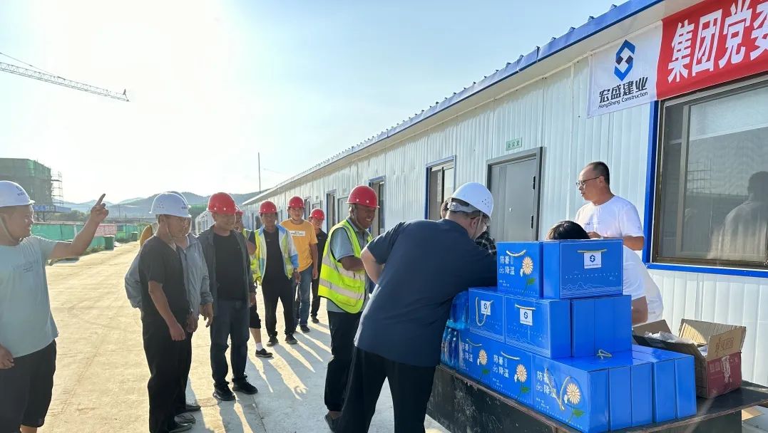 代表集團黨委及工會,向現(xiàn)場管理團隊及工人發(fā)放了清涼物資、飲料、瓜果等解暑用品,對長期奮戰(zhàn)在施工一線從業(yè)人員表示關(guān)懷。