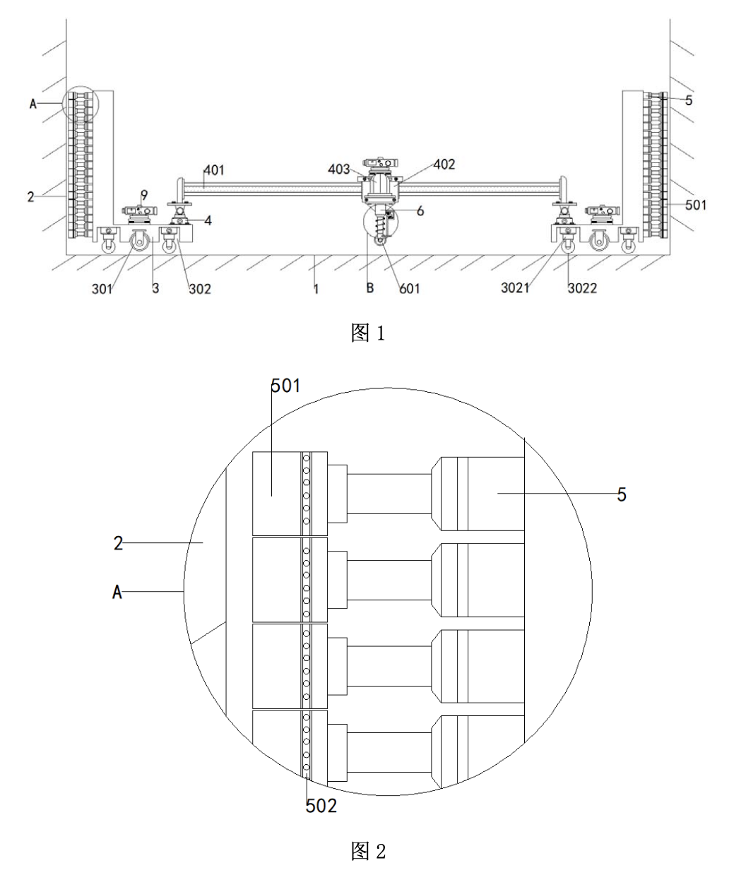 在建筑進(jìn)行全面投入建設(shè)之前,需要對(duì)建筑的一系列指標(biāo)進(jìn)行檢測(cè),檢測(cè)過關(guān)之后才能進(jìn)一步的開展對(duì)建筑的建設(shè)工作,其中的檢測(cè)工作就包括對(duì)房間內(nèi)地面與墻面的平坦度的測(cè)量工作,因此需要一種便于調(diào)節(jié)的建筑用測(cè)量裝置。本實(shí)用新型中,通過設(shè)置水平調(diào)節(jié)結(jié)構(gòu),通過使電動(dòng)伸縮桿A、剎車腳輪與水平儀之間配合使用,可以對(duì)裝置與水平面之間調(diào)節(jié)平行,方便對(duì)后續(xù)測(cè)量工作進(jìn)行開展。