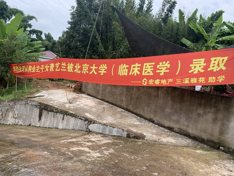 曹藝蘭,祖籍宜賓觀音鎮(zhèn),2020年以688分的優(yōu)異成績被北京大學(xué)臨床醫(yī)學(xué)專業(yè)錄取。三溪雅苑喜聞?wù)J購業(yè)主子女金榜題名,主動(dòng)對其進(jìn)行定向助學(xué),組織升學(xué)答謝宴。觀音鎮(zhèn)地處宜賓、自貢、內(nèi)江三市交界處山水綺麗、人才輩出,有程氏公許、公說、公碩的南宋一門三進(jìn)士,近代鄭佑之等先賢烈士。近年來,觀音鎮(zhèn)有多名學(xué)子考入清華、北大、人大、南開等國內(nèi)高等學(xué)府。