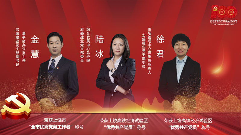 宏盛建業(yè)黨支部副書記、董事會辦公室主任金慧榮獲“上饒市優(yōu)秀黨務(wù)工作者”稱號,宏盛建業(yè)黨支部委員、綜合發(fā)展中心總經(jīng)理陸冰和宏盛建業(yè)黨支部委員、市場管理中心資質(zhì)部負(fù)責(zé)人徐君榮獲高鐵經(jīng)濟(jì)試驗(yàn)區(qū)“優(yōu)秀共產(chǎn)黨員”稱號。